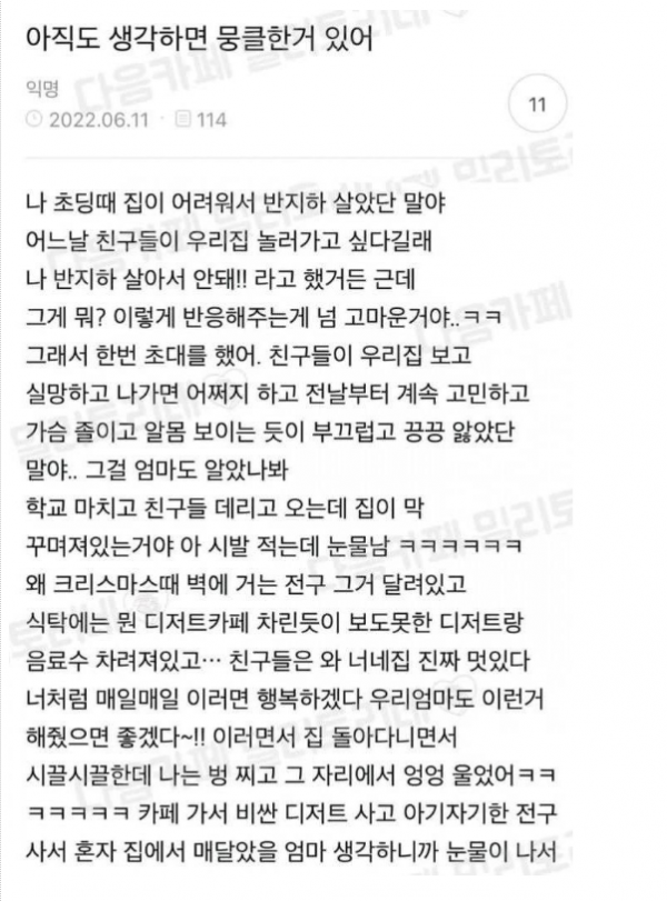 예전에는 이렇게 힘들게들 살았는데 작성자 정보 브이 작성 124.♡.228.7 아이피 작성일 2025.10.13 16:54 컨텐츠 정보 17 조회 0 추천 0 비추천 목록 본문 요즘 애들보면 고생이 뭔지도 모르고 그저 행복한듯~ 다들 하나둘이라부모덕에 편하게 사는줄 모르고~라떼는 없는게 대부분이었는데!다음카페 글 0 추천 0 비추천 관련자료 이전 다들 연휴 잘 보내셨나요? 작성일 2025.10.13 16:55 다음 너무 한가해서 ㅎㅎ 작성일 2025.10.03 14:27 댓글 0 등록된 댓글이 없습니다. 로그인한 회원만 댓글 등록이 가능합니다. 목록